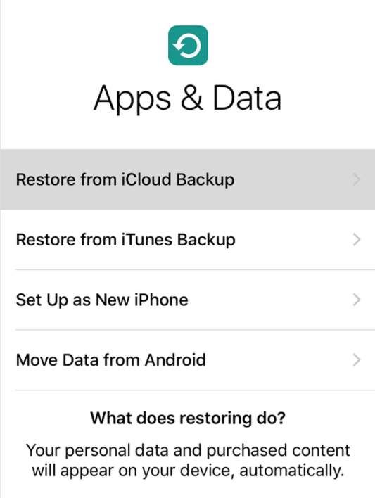 2) Если вы сделали резервную копию своих данных в ICloud, Вы можете подключить свой iPhone к Интернету и выбрать Восстановить из iCloud Backup. Затем войдите в iCloud со своим Apple ID и выберите резервную копию, которую вы хотите восстановить. Появится индикатор выполнения, и вам следует дождаться его завершения.