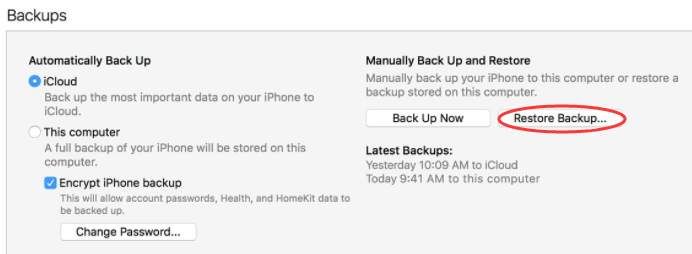 3) Если вы создали резервную копию iPhone с помощью iTunes, вы можете подключить свое устройство к компьютеру с помощью iTunes, который вы использовали для резервного копирования вашего телефона. Затем: