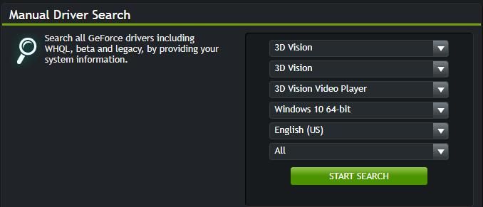 Nvidia постоянно обновляет драйверы. Чтобы получить последнюю версию драйвера для вашего Nvidia 3D Vision, вам нужно перейти на Сайт Nvidia, найдите драйвер, соответствующий вашему конкретному варианту версии Windows (например, 64-разрядная версия Windows), и загрузите его вручную.