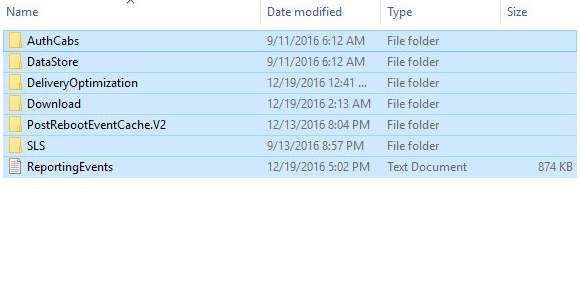 3) Перейдите к C: \ Windows \ SoftwareDistrubution папка. Удалите все файлы и папки внутри, нажав Ctrl + A и ударил удалять ключ.