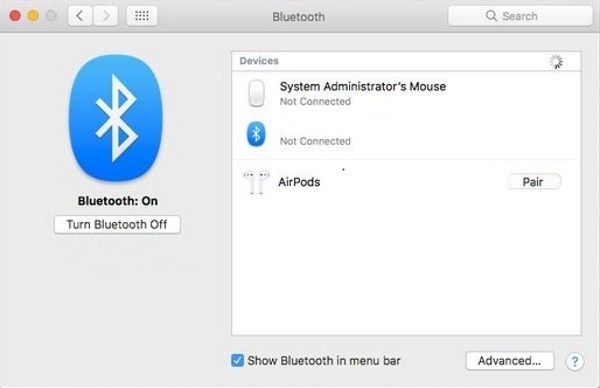 Одна из самых распространенных ошибок, которые я видел с AirPods, — это когда Bluetooth не работает на Mac. На вашем Mac откройте Системные настройки, выберите Bluetooth и убедитесь, что он включен. Если это так, выключите его и включите снова. Вы также можете переключить кнопку Bluetooth на вашем дисплее, если хотите.