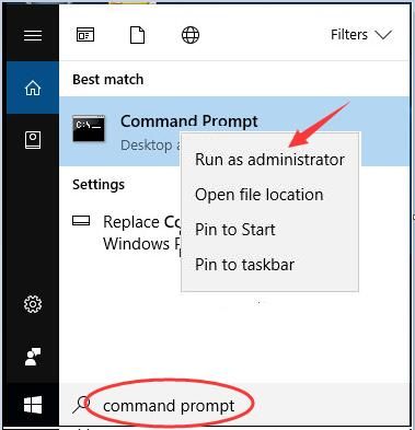 1) Тип командная строка в поле поиска от Пуск. Затем щелкните правой кнопкой мыши на Командная строка выбирать Запустить от имени администратора. Нажмите да когда предложено контролем учетной записи пользователя.
