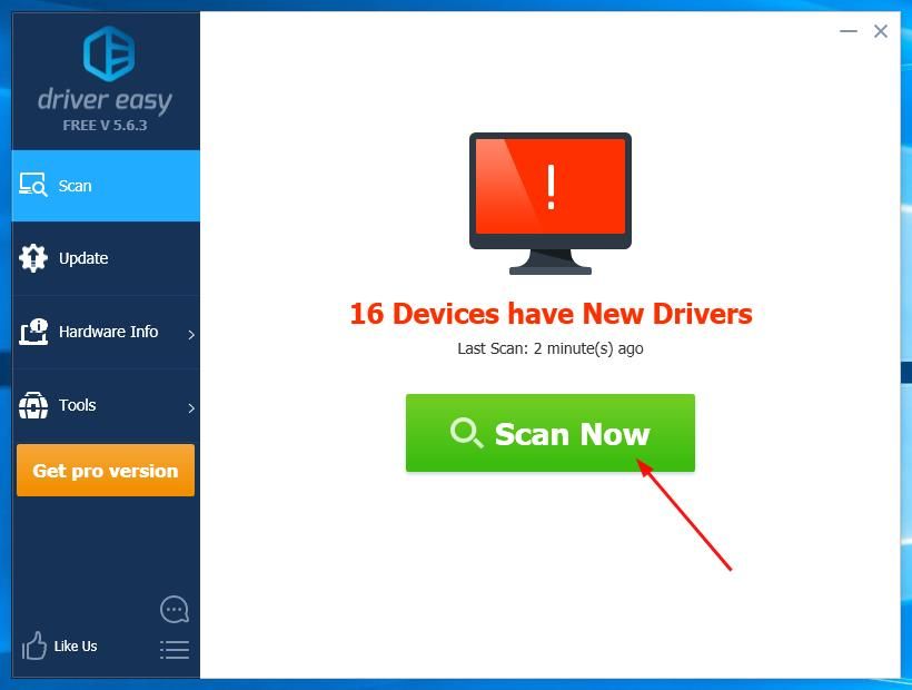 2) Запустите Driver Easy и нажмите кнопку «Сканировать сейчас». Driver Easy проверит ваш компьютер и обнаружит проблемы с драйверами.