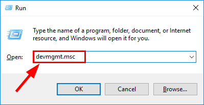 - На клавиатуре нажмите ключ с логотипом Windows а также р в то же время. Затем введите devmgmt.msc и нажмите Войти.