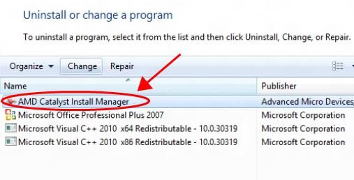 3) После загрузки вы должны удалить существующий драйвер видеокарты AMD на вашем компьютере. Вы можете сделать это, перейдя к Панель управления > Программы и особенности > Установщик AMD > Удалить.