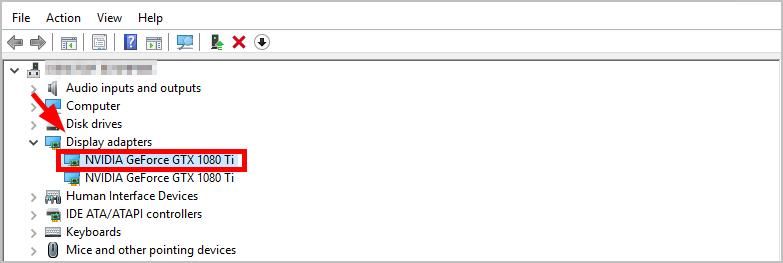 3) Дважды щелкните Адаптер дисплея, затем дважды щелкните NVIDIA GeForce GTX 1080 Ti.