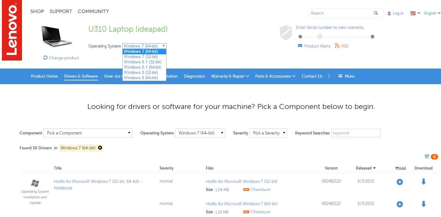 Заметка Lenovo не выпускает драйверы Windows 10 для Lenovo Ideapad U310. Таким образом, вы не найдете драйверов для Windows 10 на странице продукта. U310 включает в себя аппаратные компоненты, не полностью совместимые с Windows 10. Поэтому обновление до Windows 10 не рекомендуется. Подробнее смотрите в Руководстве по обновлению Lenovo до Windows 10.