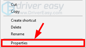 1) Щелкните правой кнопкой мыши ярлык на рабочем столе для вашей игры и выберите свойства.