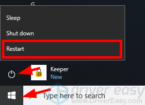 1) Нажмите на Начните в левом нижнем углу экрана и нажмите кнопку Мощность кнопка. Затем нажмите и удерживайте сдвиг нажмите на клавиатуре и нажмите Запустить снова.