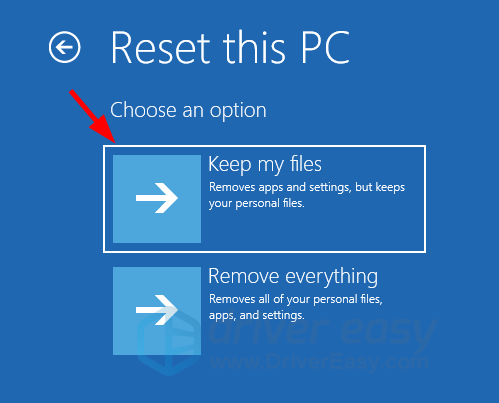 4) Выбрать Храните мои файлы. Ваш компьютер перезагрузится.