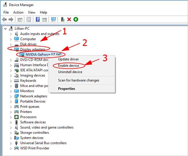 Исправление 3: обязательно включите графическое устройство