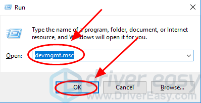 2) Тип devmgmt.msc и нажмите Хорошо.