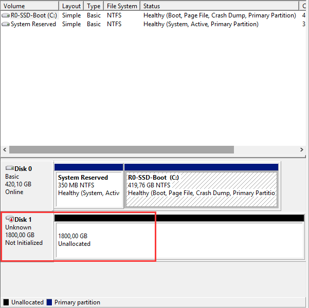 5) Как вы можете видеть на горячем экране, диски теперь Диск без RAID как отмечено в красном поле, что неправильно в нашей ситуации.