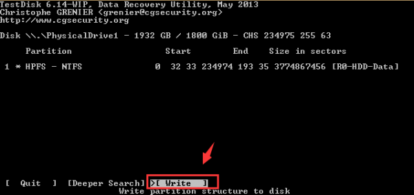 25) Когда вы увидите этот экран, нажмите Написать записать информацию о найденном разделе обратно на диск.
