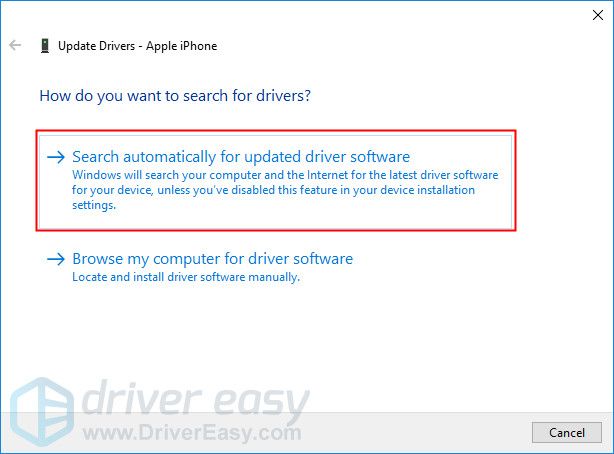 6) Выберите Автоматический поиск обновленного программного обеспечения драйвера и следуйте инструкциям на экране, чтобы обновить драйвер для Apple iPhone.