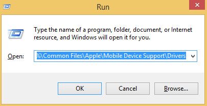 4) На клавиатуре нажмите ключ с логотипом Windows а также р одновременно открыть диалоговое окно «Выполнить». Тип % ProgramFiles% \ Common Files \ Apple \ Поддержка мобильных устройств \ Драйверы и нажмите Войти.