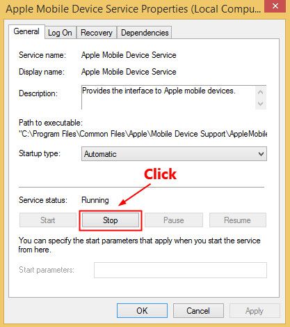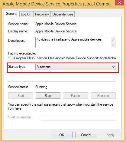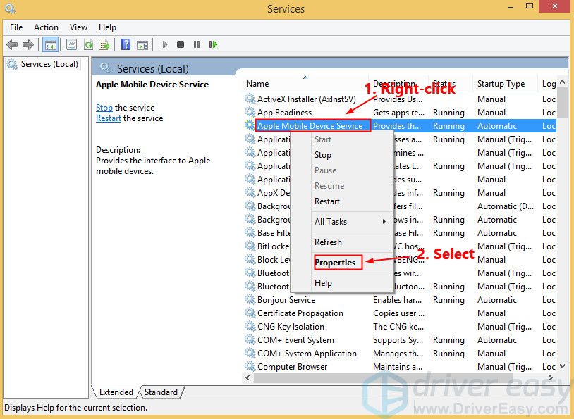 3) Щелкните правой кнопкой мыши Apple Mobile Device Service и выберите свойства.