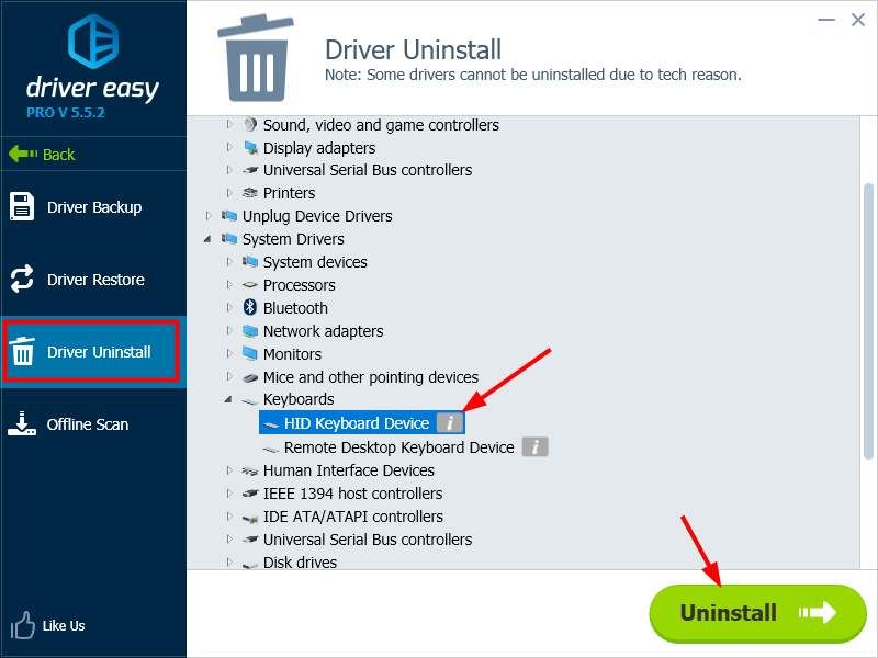 Помимо обновления драйвера, вы также можете использовать Driver Easy для деинсталляция водитель (также профессионал требуется). Это полезно, особенно если вы хотите переустанавливать драйвер устройства.