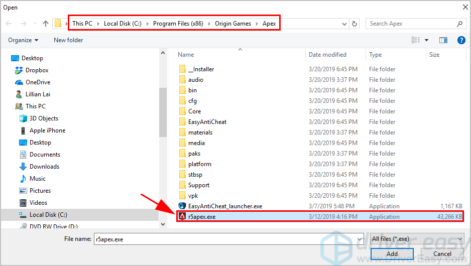 4) Выберите Apex Legends .exe.