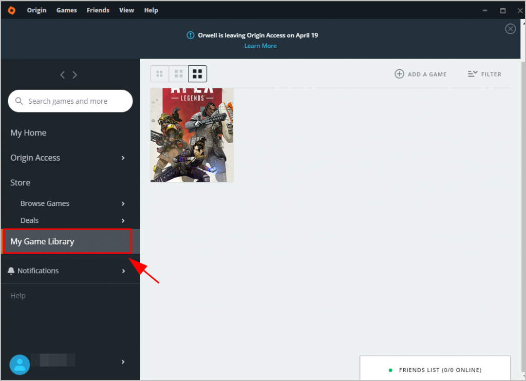 1) Откройте Origin и нажмите Моя библиотека игр.