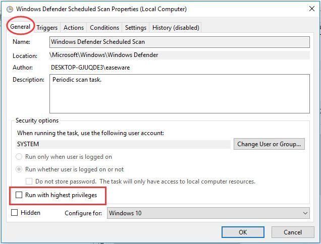 4) Снимите отметку Запуск с самыми высокими привилегиями.
