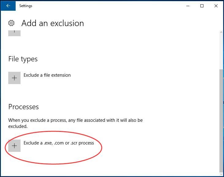 3) Нажмите Исключить процесс .exe, .com или .scr