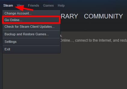 - На вашем клиенте Steam нажмите Пар в верхнем левом углу, затем нажмите Go Offline.