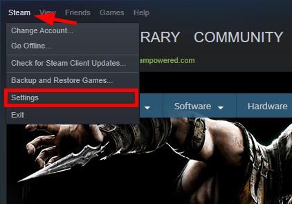 - На вашем клиенте Steam нажмите Пар в верхнем левом углу, затем нажмите настройки.