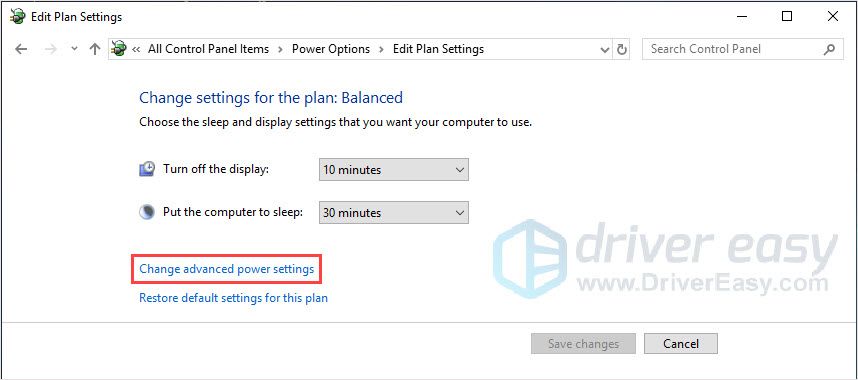 - Нажмите Изменить расширенные настройки питания.