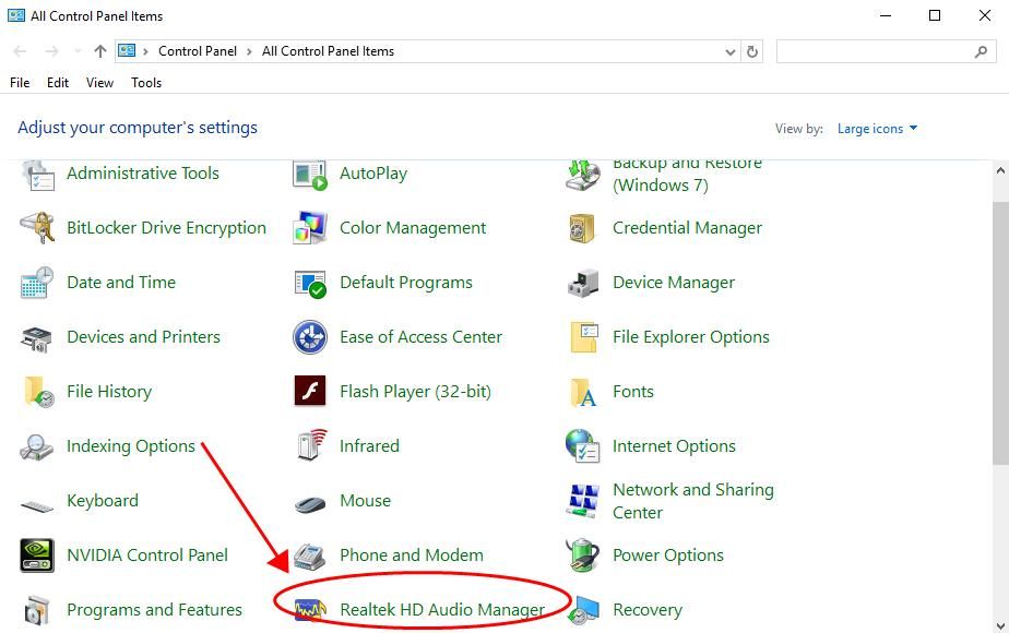 2) Открыть Панель управления на вашем компьютере, и нажмите Realtek HD Audio Manager чтобы открыть это.