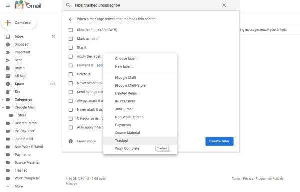Теперь каждый раз, когда приходит спам или маркетинговая электронная почта, Gmail сканирует ее на наличие слова «отписаться», а также помечает и перемещает ее. Поскольку большинство законных спамов где-то содержат это слово, это самый полезный оператор для работы со спамом.