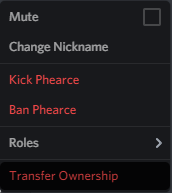 - Выберите Transfer Ownership из предоставленного меню.