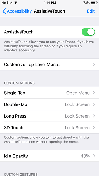 Вернитесь в Snapchat и убедитесь, что вы находитесь на интерфейсе камеры. Вы можете открыть меню специальных возможностей прямо сейчас, затем щелкнуть значок Custom и выбрать только что сохраненную опцию. Вы можете перемещать точку вокруг, чтобы убедиться, что она находится именно там, где она должна быть на экране, и можете нажать ее, чтобы «воспроизвести» жест. Во время воспроизведения точка жеста загорится белым; когда она не играет, маленькая точка вернется в серое положение, что позволяет легко отслеживать, что вы делаете на устройстве.