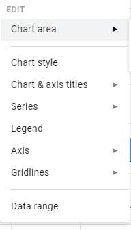 Большинство элементов в контекстном меню просто переносят вас в соответствующий раздел редактора диаграмм, но это очень полезный ярлык для часто выбираемых задач. С помощью контекстного меню вы можете изменить стиль диаграммы, изменить заголовки и субтитры диаграммы и оси, выбрать серию данных, отображаемую на диаграмме, изменить легенду, изменить метки на осях X и Y, установить линии сетки или сбросить диапазон данных, из которого взят график.