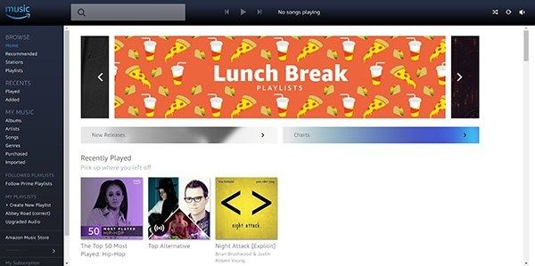 Начните с открытия новой вкладки в Chrome на своем компьютере и перехода к целевой странице Amazon Music здесь. При необходимости войдите в свою учетную запись или дождитесь загрузки веб-приложения на вашем дисплее. Страница одинакова, есть ли у вас Amazon Prime Music, Amazon Music Unlimited или вы только что купили MP3 в магазине Amazon. Независимо от того, как вы получили свою музыку, страница, на которую вы направляетесь, остается одной и той же.