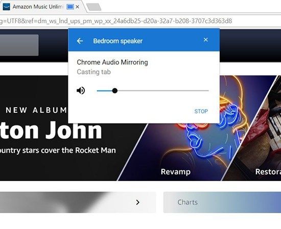 Как только вы установите громкость звука, начните играть что-нибудь из своей библиотеки или с одной из собственных радиостанций Amazon. Ваш браузер автоматически перенесет аудио с этой вкладки (и только с этой вкладки) с вашего компьютера на устройство Google Home, и вы услышите, как ваша музыка начинает воспроизводиться.