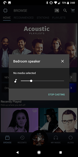 Еще в ноябре 2017 года, когда Google и Amazon продолжали бороться за доминирование в своих отношениях, Amazon наконец-то добавил поддержку Cast в версию Android своего приложения Music, тем самым сделав Amazon Music первым приложением Amazon с полной поддержкой Chromecast. Это означает, что любой пользователь с телефоном или планшетом на базе Android может использовать приложение Amazon Music для воспроизведения своих любимых песен, станций, плейлистов и многого другого прямо на своем динамике Google Home.