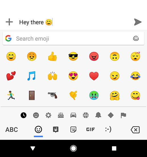 После того, как вы ввели свое сообщение, вы захотите выбрать соответствующий эмодзи. Самый простой способ сделать это — нажать маленькую клавишу Emoji в нижней части клавиатуры. Он выглядит как смайлик и — по крайней мере на Gboard — загружает подробный и длинный список всех доступных смайликов по категориям, а также ваши последние использованные смайлики. Что хорошего в Gboard, так это возможность поиска определенных смайликов, что замечательно, когда в Android 7.0 можно выбрать более 1000 смайликов. Просто нажмите на строку поиска над вашими смайликами с надписью «Поиск смайликов» и введите в поле нужное вам чувство или эмоцию. Например, если вам нужно указать любовь, то набрав «любовь» или «сердце», вы увидите множество вариантов для выбора. Более «продвинутые» или опытные пользователи смайликов могут захотеть использовать перевернутые смайлики для обозначения сарказма или ухмыляющихся смайликов для обозначения самодовольства или кокетства. Вместо того, чтобы скользить по страницам и страницам контента, вы можете просто напечатать «вверх ногами» или «ухмыляться» в поле, чтобы найти правильные эмоции и эмоции.