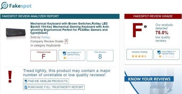 Fakespot был разработан специально для того, чтобы отсеять ложные отзывы на Amazon. Вы можете использовать функцию поиска на сайте, использовать расширение браузера или мобильное приложение. Это делает короткую работу прочесывания через обзоры Амазонки, ища подделки.