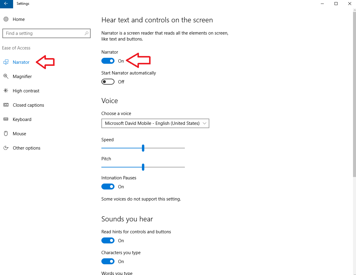 Вы также можете переместить ползунок «Начать рассказчик автоматически» в положение «Вкл», что сразу же включит рассказчик при запуске Windows 10.