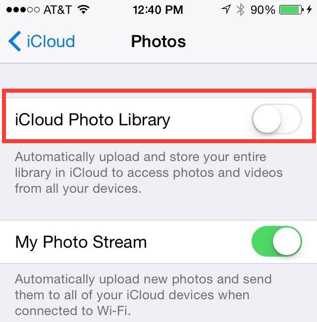 Вы можете мгновенно освободить необходимое дисковое пространство с помощью библиотеки фотографий iCloud прямо с вашего iPhone. iCloud Photo Library использует хранилище iCloud, поэтому ваши видео и фотографии остаются актуальными на всех устройствах iOS. Это позволяет меньше раздражать, когда вам просто нужно сделать эти великолепные пейзажные фотографии и мгновенные селфи. Чтобы это работало эффективно, вам нужно убедиться, что у вас достаточно места для хранения iCloud. Кроме того, имейте в виду, что любые фотографии, которые были переданы в потоковом режиме, можно просматривать только онлайн.
