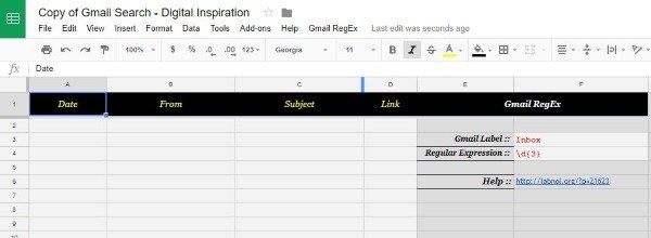 RegEx будет искать в вашей учетной записи Gmail любое электронное письмо, содержащее все, что вы положили в Cell F4, и возвращать их в виде списка на листе. Вы можете выбрать их прямо оттуда.