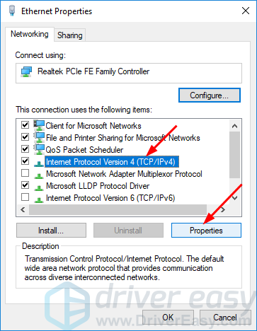 - Нажмите Интернет-протокол версии 4 (TCP / IPv4), затем свойства.
