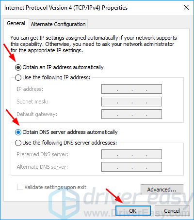 - Отметьте Получить IP-адрес автоматически а также получать Адрес DNS-сервера автоматически. Затем нажмите Хорошо.