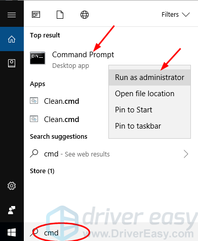 - Тип CMD в поле поиска из меню Пуск. Затем щелкните правой кнопкой мыши на Командная строка выбирать Запустить от имени администратора.