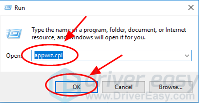 2) Тип appwiz.cpl, и нажмите Хорошо.