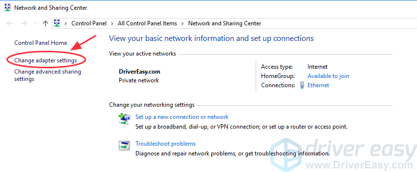 Способ 3. Устранение неполадок в настройках в Центре управления сетями и общим доступом