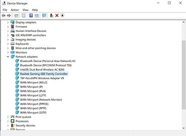 Затем мы должны проверить наш драйвер сетевой карты на наличие обновлений. Это звучит технически, но на самом деле это просто заставляет ваш компьютер искать любые обновления, которые могут исправить потенциальные ошибки и проблемы. Чтобы выполнить этот шаг, вам может потребоваться использовать компьютер друга для загрузки необходимых обновлений драйверов или использовать WiFi, если вы можете получить доступ к Интернету без проводов. Чтобы обновить сетевые драйверы, нажмите кнопку «Пуск» на компьютере или клавиатуре и введите «Диспетчер устройств», затем нажмите клавишу «Ввод». Откроется диспетчер устройств с полным списком аппаратных компонентов вашего устройства. Этот список находится в алфавитном порядке, что позволяет легко найти список ваших сетевых адаптеров внутри менеджера. Раскройте значок вкладки рядом с Диспетчерами устройств (как показано на скриншоте) и найдите сетевой адаптер для вашей карты. Это может быть указано под несколькими разными именами. Если вы не уверены, какой драйвер относится к вашей сети Ethernet, нажмите значок «Пуск» на панели задач или клавиатуре и введите «ncpa.cpl», чтобы открыть настройки сети на панели управления. Ищите имя вашего подключения к сети Ethernet; это имя будет соответствовать вашему драйверу Ethernet. Чтобы проверить наличие обновлений для вашего драйвера, щелкните правой кнопкой мыши каждый список и выберите «Обновить драйвер» во всплывающем меню. Когда откроется меню обновления, выберите «Автоматический поиск обновленного программного обеспечения драйвера», если вы можете получить доступ к Интернету. Это автоматически выполнит поиск обновлений для вашего драйвера и предложит вам установить обновление, если оно доступно.
