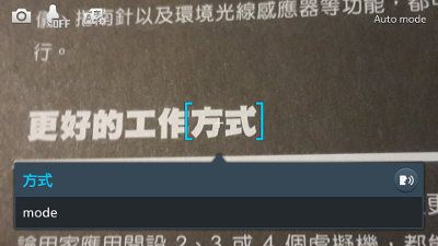 - Если Оптический считыватель удастся подобрать слова, на экране появится диалоговое окно с переведенным словом.