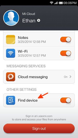 - Убедитесь, что Найти устройство опция включена в Mi Cloud Настройки на вашем телефоне.